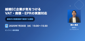 2025年7月30日に『越境EC企業が気をつけるVAT・商標・EPRの実務対応』のタイトルにて、セミナーを開催させていただきました。